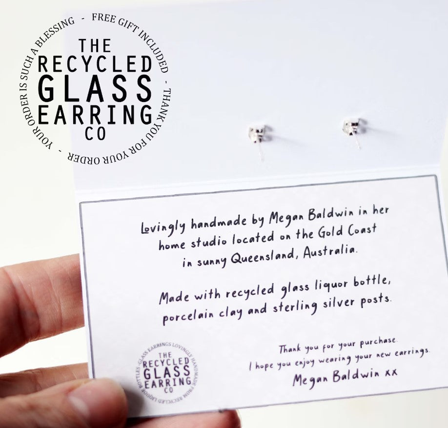 The perfect sustainable gift for the pink gin lovers in your life, these earrings are made by small business owner Megan Baldwin on the sunny Gold Coast, Queensland. Her unique earrings are made from recycled Gordon's Pink Gin bottles, porcelain clay and sterling silver posts with scroll backs.