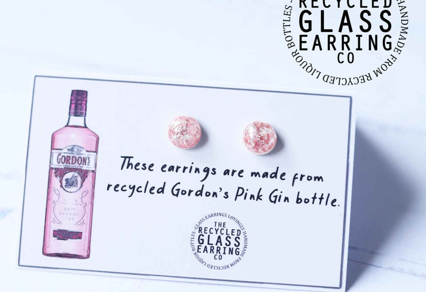 Recycled Glass Earrings - Gordon's Pink Gin Bottle