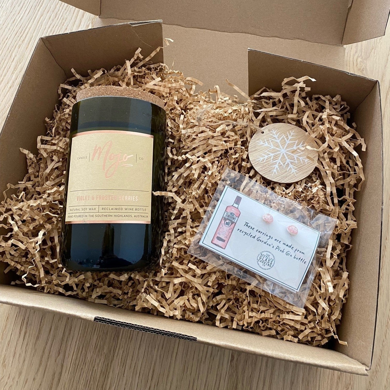 - 1 x Mojo Upcycled Wine Bottle Candle (Violet and Frosted Berries)